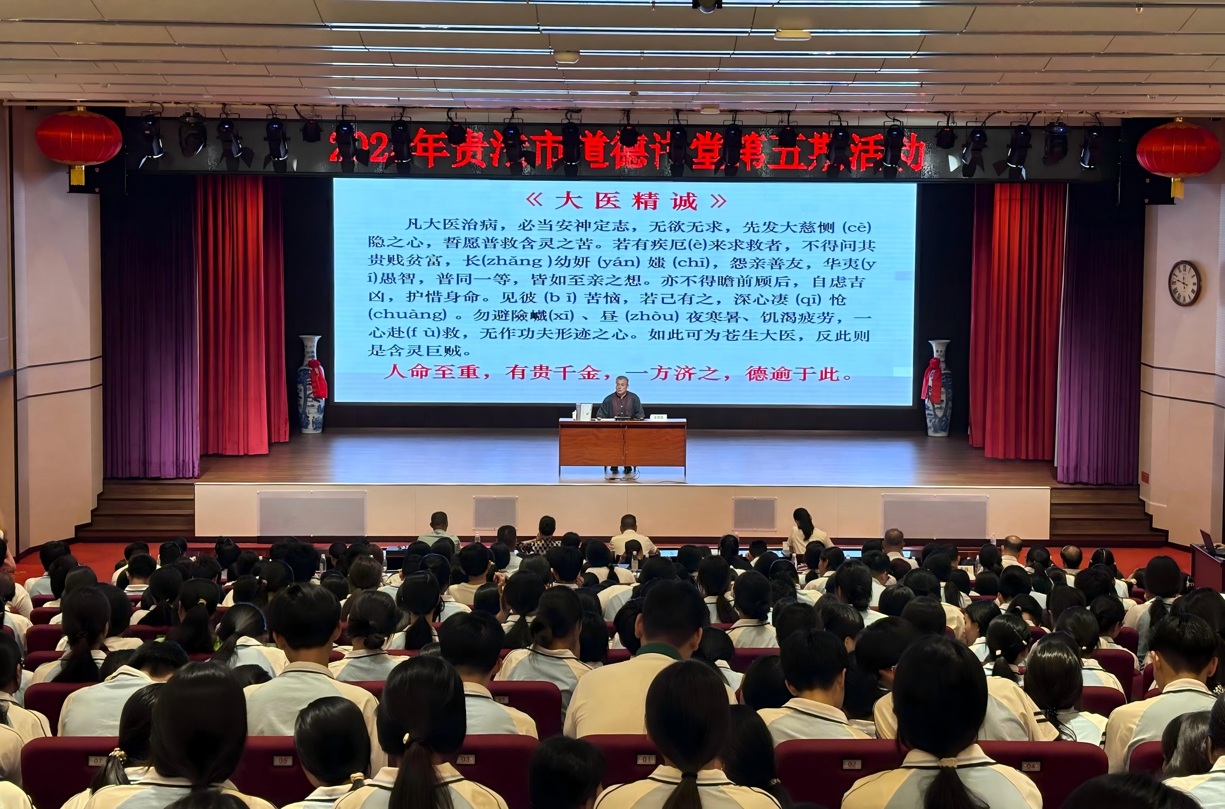 9月1日,2025年贵港市道德讲堂(第5期)在贵港市东晖医院举行。本期道德讲堂以《大医精诚》为题,由市精神文明办、市卫健委主办,贵港农村商业银行股份有限公司承办,广东省蓝态幸福文化公益基金会学术专家委员会委员、山东省菏泽市第十五届政协委员王西胜受邀主讲。来自贵港市卫健系统领导干部、部分一线医务工作者代表和贵港市卫生学校在校生共560多人现场参加活动。