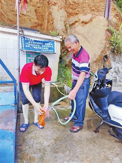 9月29日清晨,相邻乡镇大安镇的村民王伯专程赶来凤山泉接水,蹲在平整的接水平台边装水时,忍不住向旁人感慨:“泉眼就在山脚下,当时荒草长得比人还高,多亏李老发现了这处水源!我每周都来这儿装水,周边乡邻都夸这水质好,煮粥煮饭口感很好。”王伯口中这处惠及乡邻的“宝藏水源”,能从荒草丛生的泉眼变成方便取用的民生水,离不开李桂南多年来的坚持与实干。