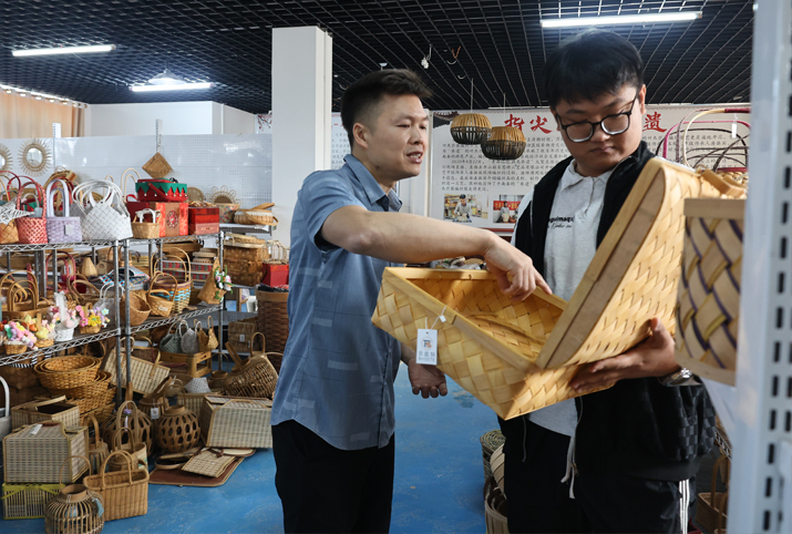 可新的问题又来了:要做非遗手工体验基地,现有的工厂场地根本不够。就在我犯愁的时候,平山镇另一家编织企业的老板刚好新建了厂房,我们聊起这个想法,一拍即合——一起打造“山里文化研学基地”。我们研发了非遗材料包,里面有剪好的竹篾、彩色的线,普通人在家就能编;还开设了研学课程,让孩子、大学生前来体验。