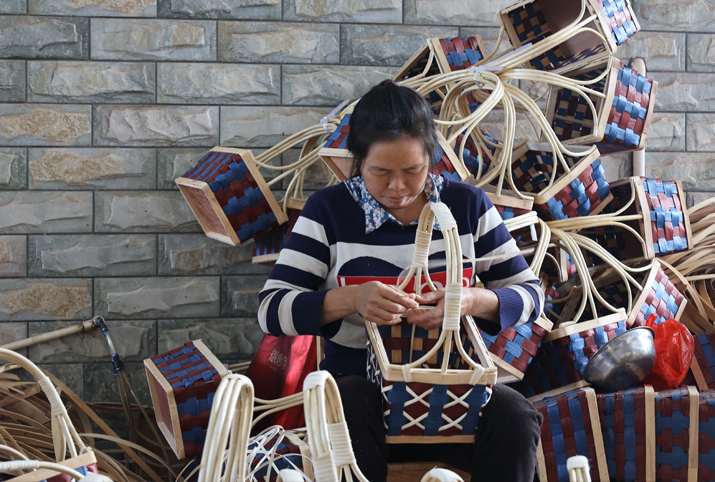 我们的订单大多来自广交会。每次去参展,我们都会把最新的样品带去,有合作意向的客商就会来厂里选品、提要求,团队再根据需求调整设计,确定后就开工生产,最后打包装进集装箱,通过海运发往日韩及欧美等地市场。说起来,我们每一件产品都不容易——要经过割青、烤色、刮片、抽丝等几十道工序。老匠人的手指上带着茧子,正因如此,编出来的竹篾才又匀又韧。到2019年,我们公司已经成了平南县规模最大的编织制品出口企业,年销量达100万件,年产值2800万元,员工也从最初的几十人,增加到了近400人,大多是本地村民。有些年纪大的老人没法来工厂,我们就派专车送材料上门,做好了再上门收,让他们既能赚钱,又能照顾家里。