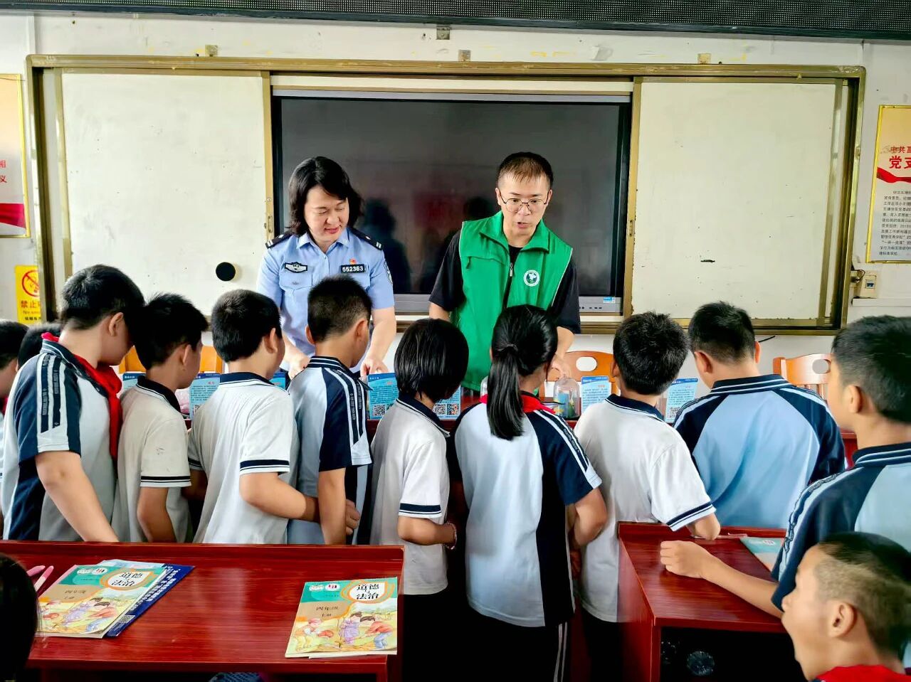 为进一步提高青少年安全防范意识,共建无毒安全校园护航青少年安全健康成长,9月5日,八塘街道铁路派出所、八塘街道平安法制办、八塘街道司法所、八塘街道社戒(社康)工作站、社区网格员到八塘街道湴村小学共同开展以“普法、交通安全、禁毒”为主题的宣传教育活动。