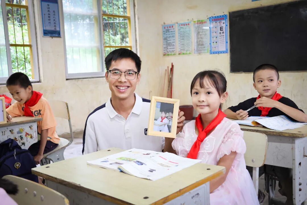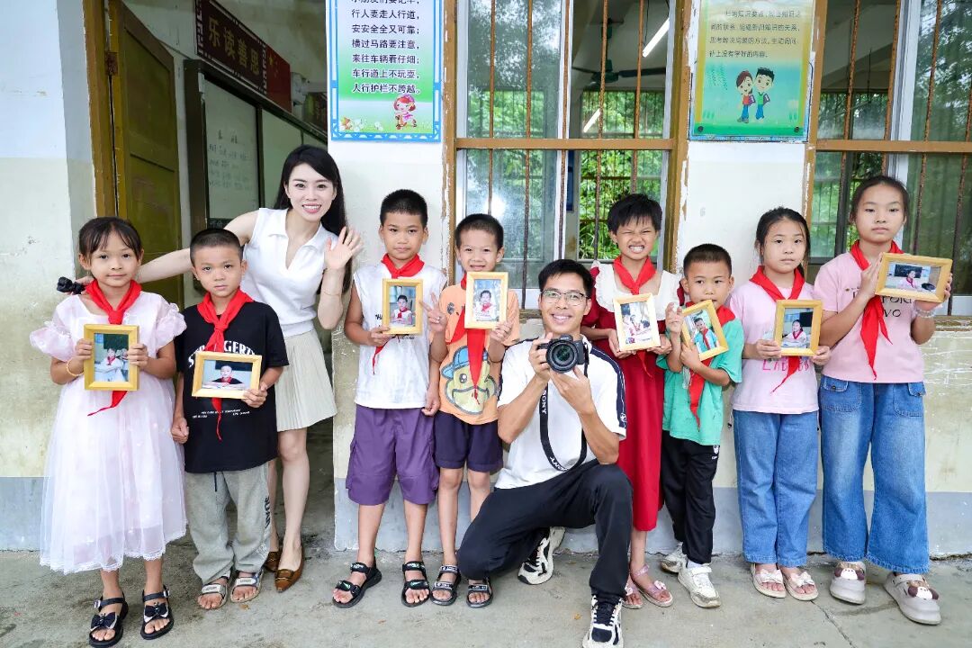 拍完“全家福”志愿者还为每位学生拍摄个人照,现场打印、装框,九槐教学点的陈淑灵捧着照片反复端详后小心放进书包:“谢谢哥哥姐姐,我要带回家给家人看!”