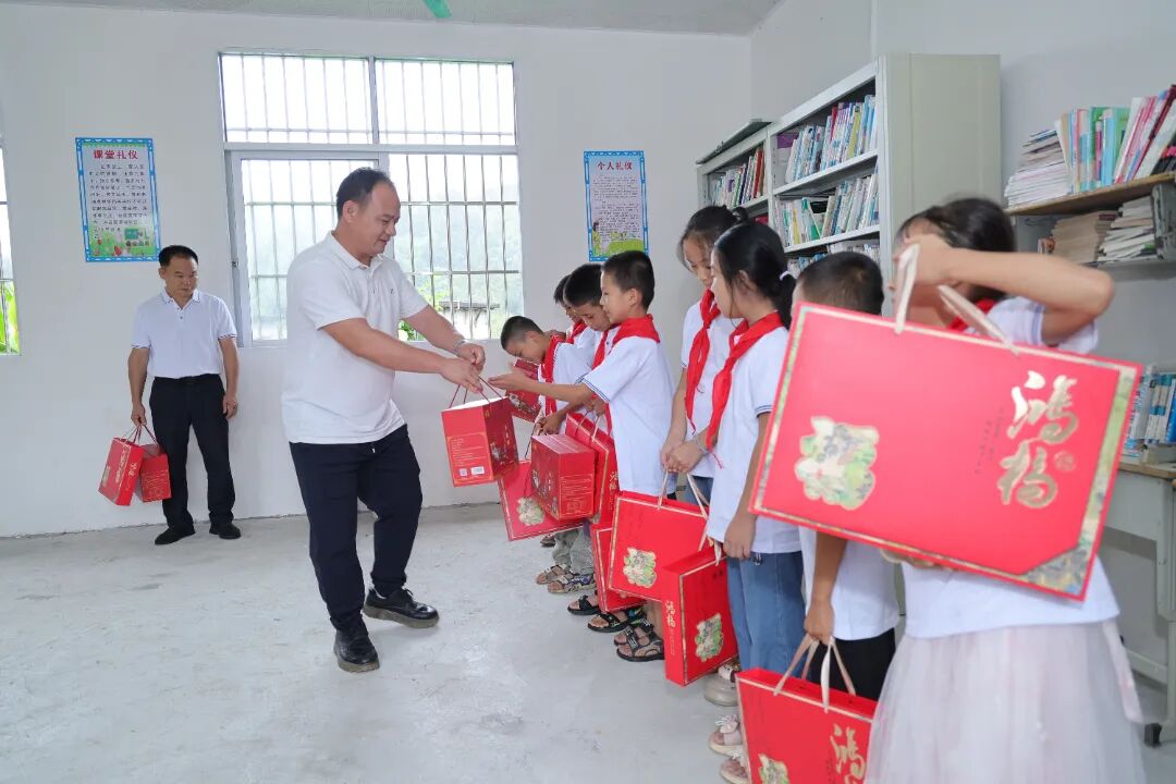 爱心企业的到来,让教学点满是惊喜。广西凤芝食品有限公司带来米粉、月饼、小蛋糕,香甜滋味甜到心里。