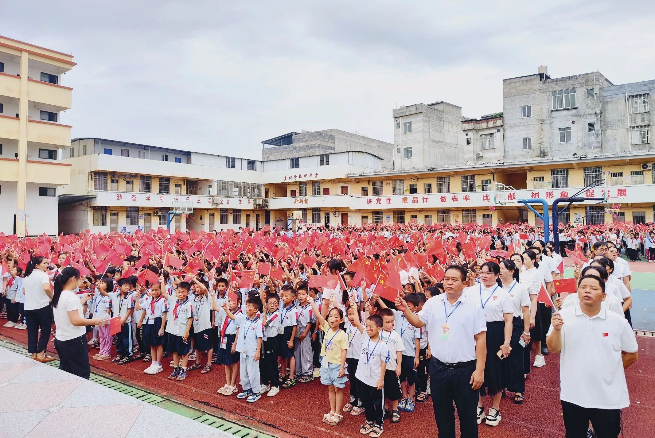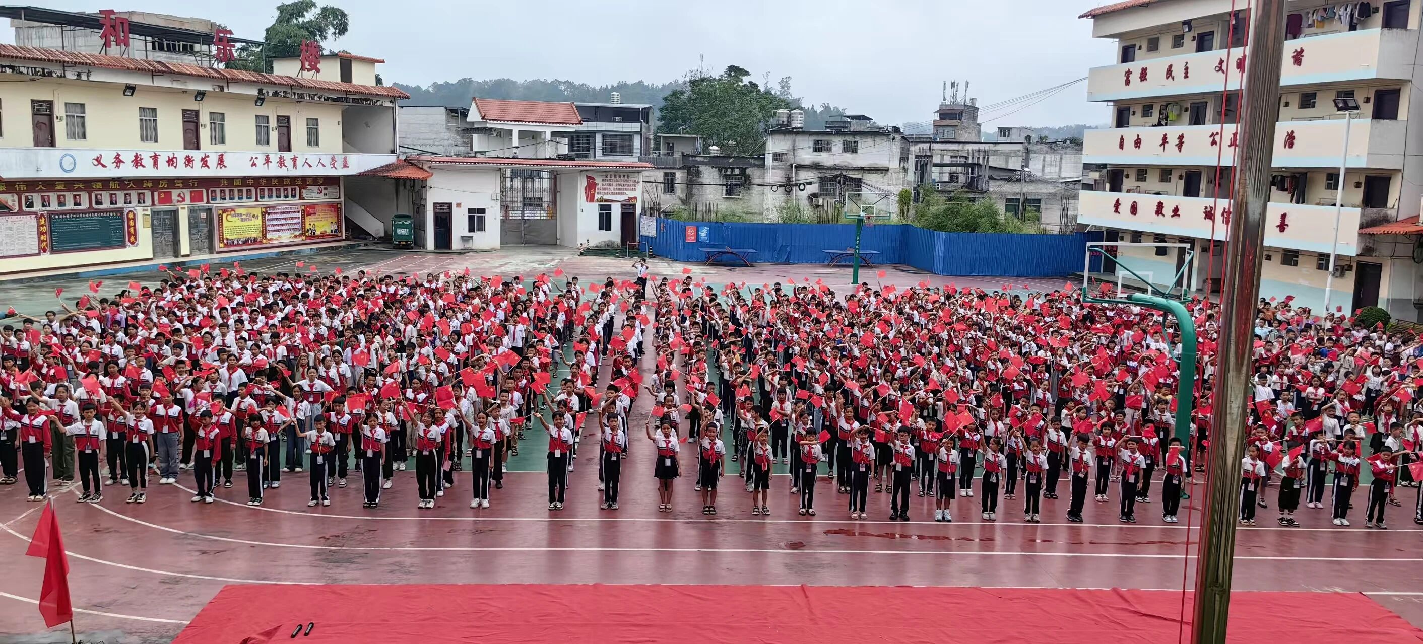 ▲近日,桂平市垌心乡中心小学开展庆祝国庆节暨红歌大合唱活动。全校师生以嘹亮歌声传唱红色经典,用旋律抒发爱国情怀。