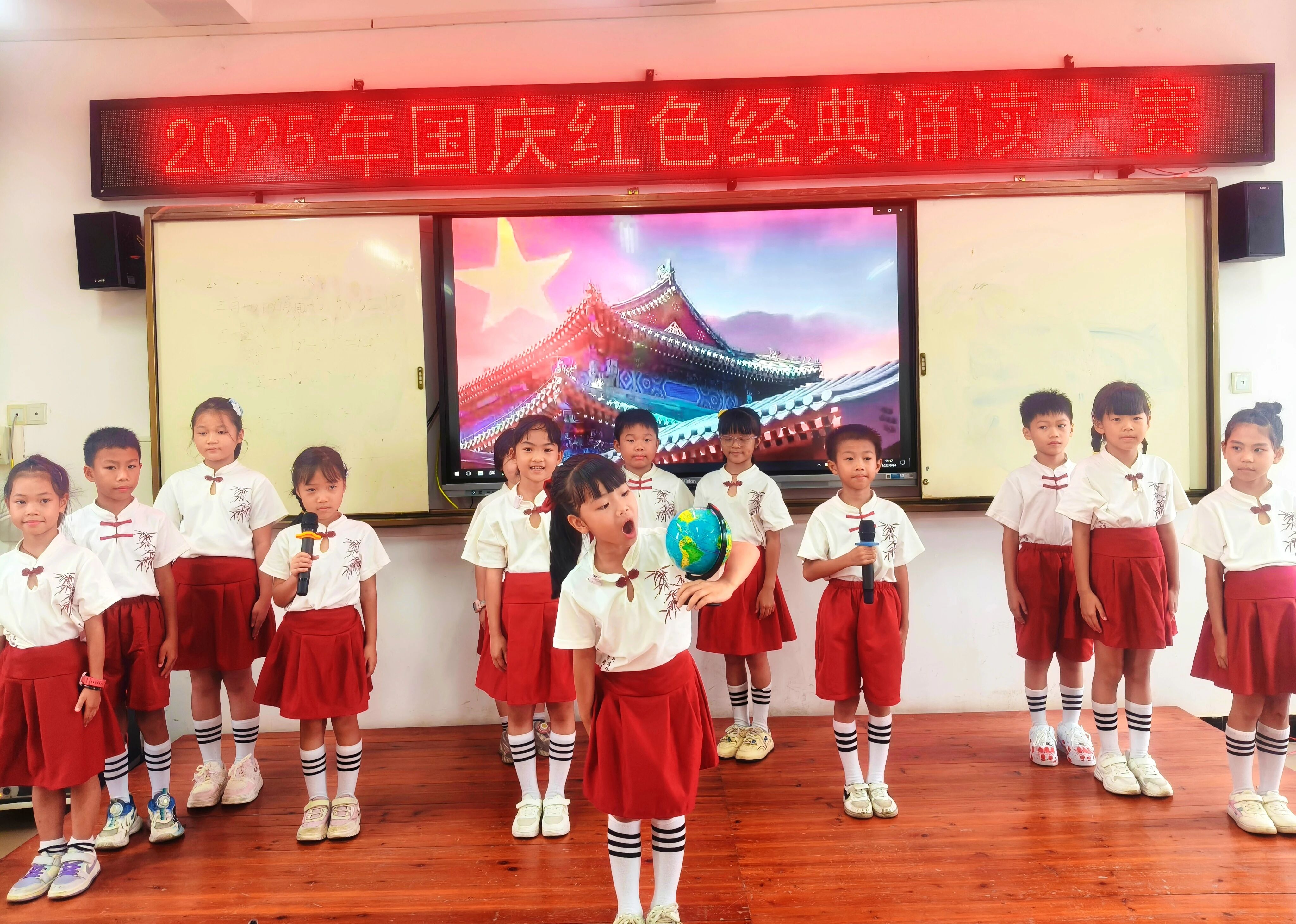 ▲9月29日,平南县上渡街道中心小学举办以“迎中秋 庆国庆”为主题的红色经典诵读大赛,祝福祖国母亲生日快乐!永远繁荣昌盛!