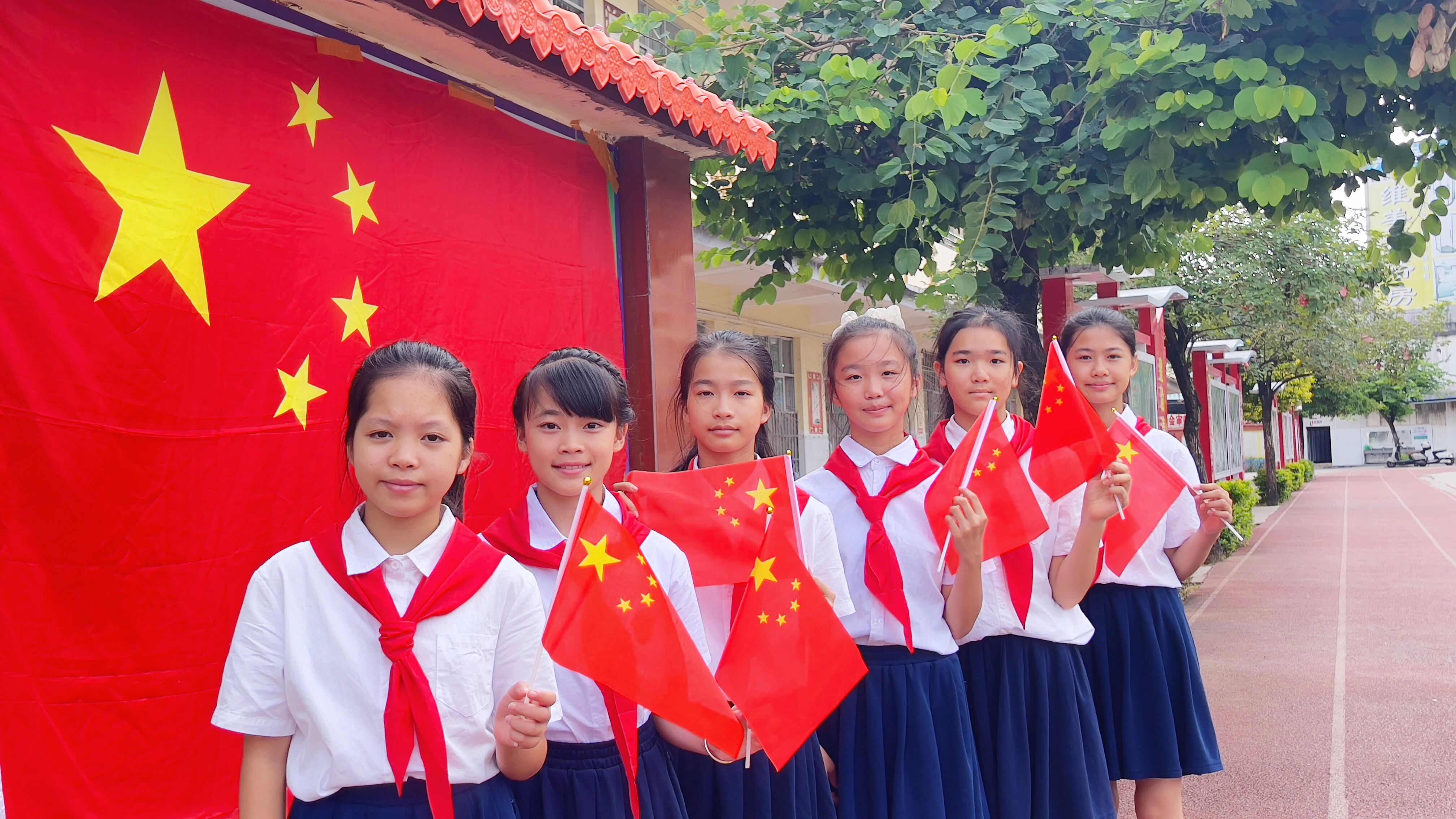 ▲近日,港南区第四初级中学与全体师生共贺国庆,祝祖国繁荣昌盛。