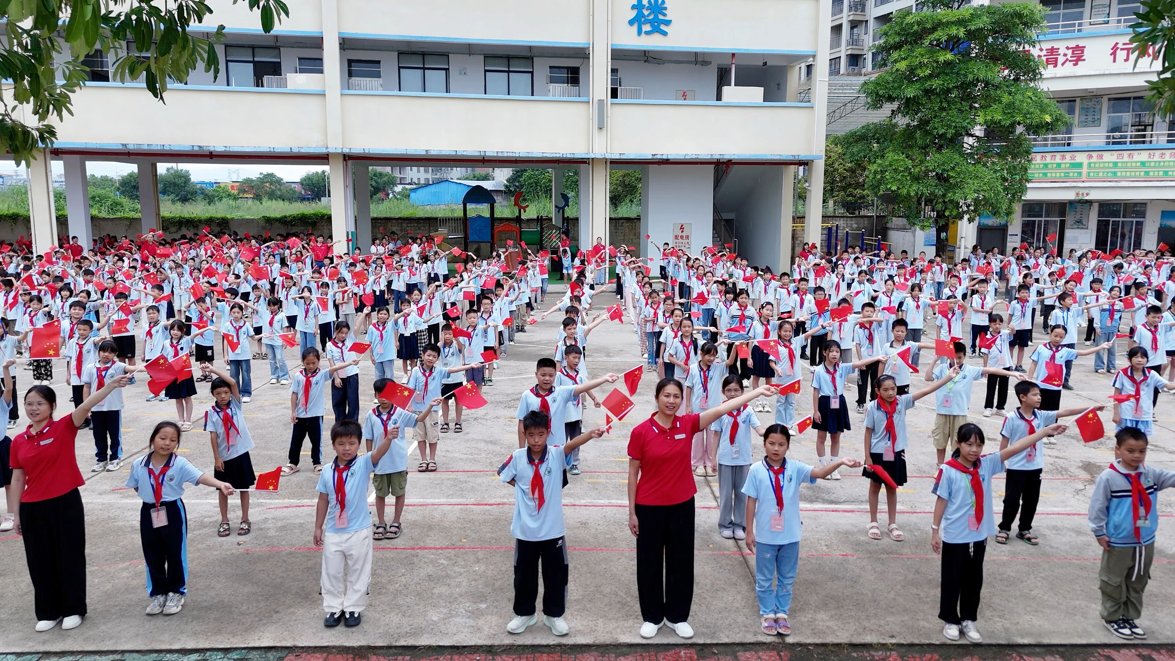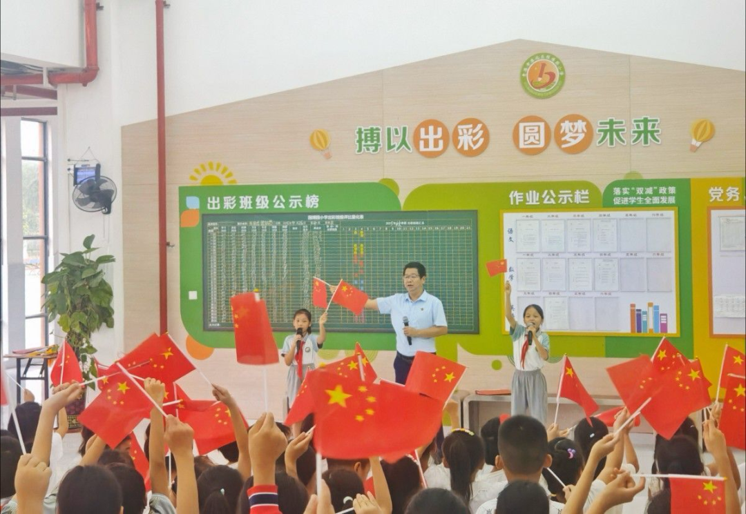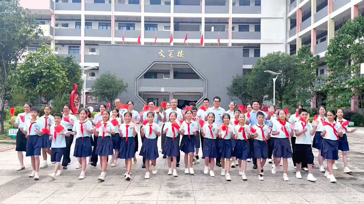 ▲9月29日,港北区金港小学举行以“知行合一迎华诞,尚学笃行爱国心”为主题的迎国庆爱国主题活动。全校师生在庄严的仪式和生动的展演中,表达对祖国的热爱与祝福。