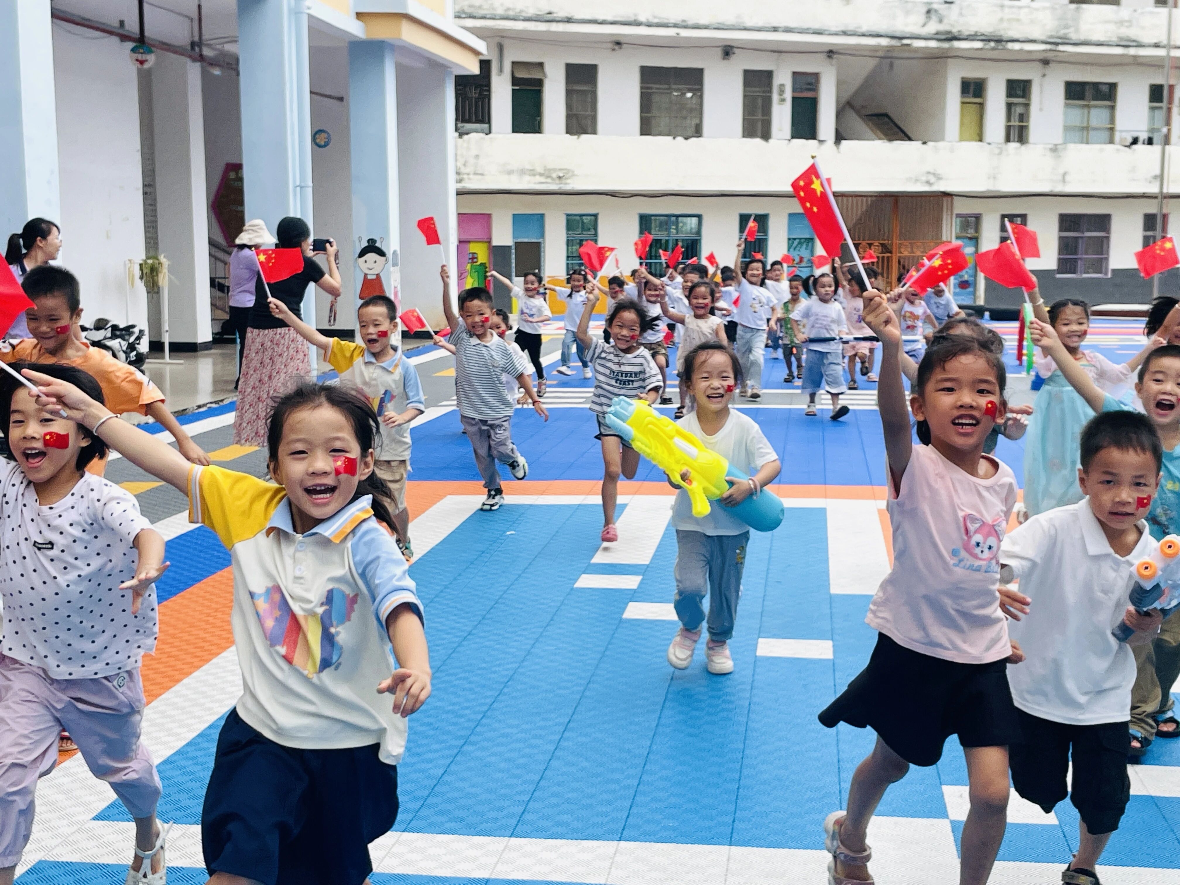 ▲9月29日,平南县平南街道西山小学的学生与鲜艳的五星红旗进行了庄严而温馨的合影,表达对祖国的无限热爱!