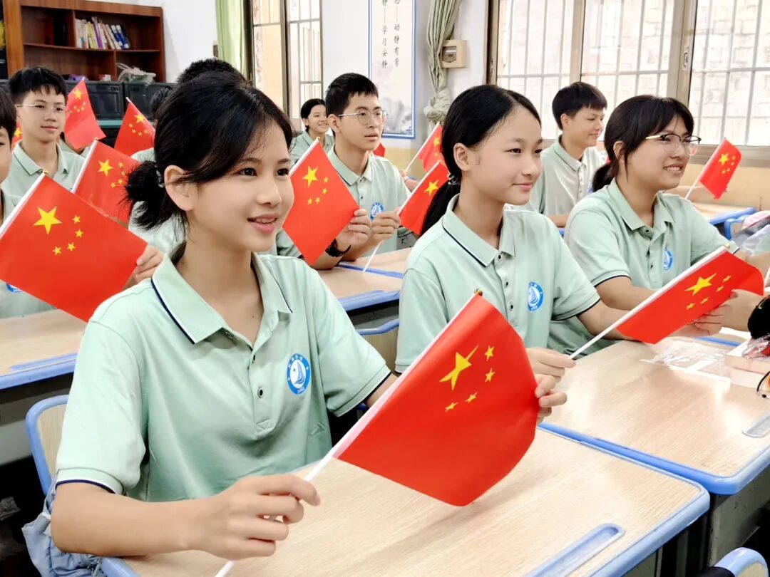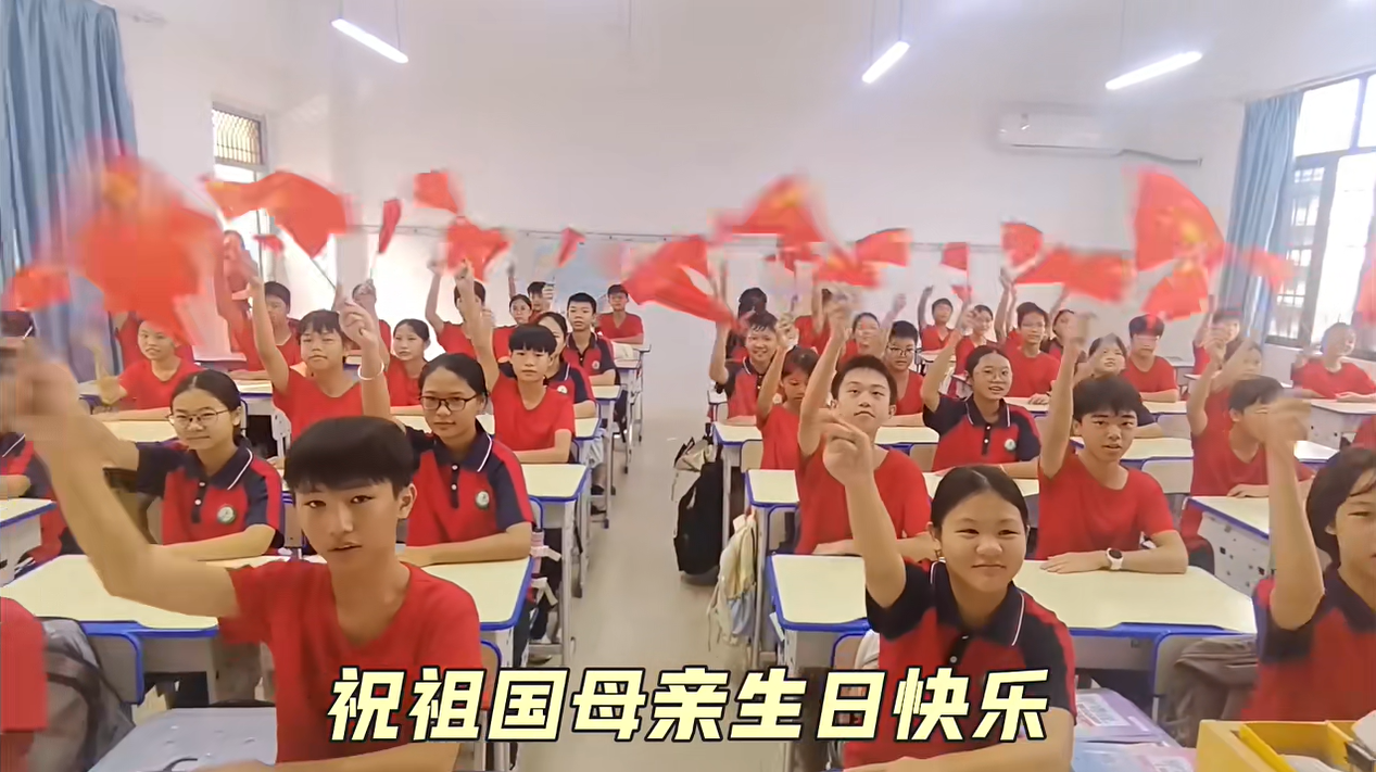 ▲9月29日,港北区第三初级中学开展班级合唱比赛与“我与国旗合个影”主题活动。同学们用嘹亮的歌声演绎经典红歌,以创意合影表达对祖国的深情祝福。