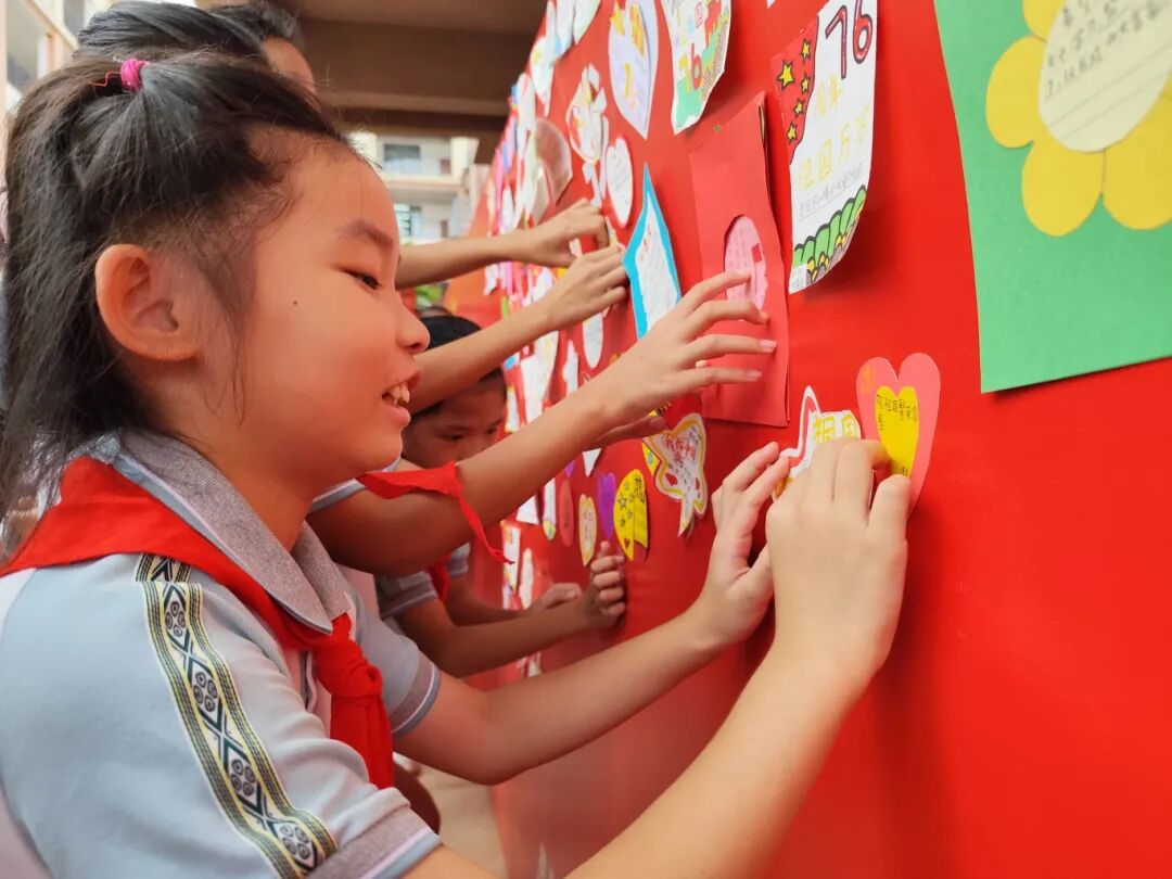 ▲9月29日,港北区新华路小学于举行“礼赞祖国,同心筑梦”庆国庆活动。全校师生通过思政课、手语操表演《我和我的祖国》、寄语心愿墙及与国旗合影等活动,共同庆祝新中国成立76周年,抒发爱国情怀。