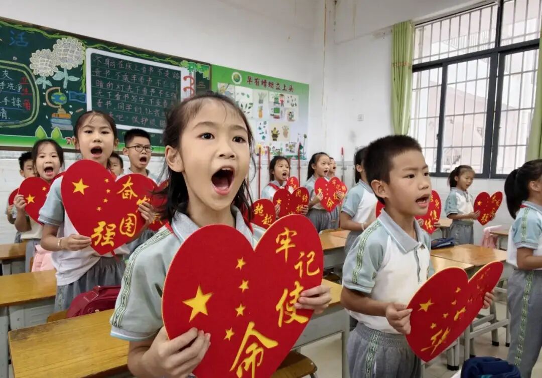 ▲9月30日,贵港市东湖小学举办“童心筑梦新时代 强国有我向未来”庆国庆迎中秋系列教育活动。活动内容涵盖“一分钟说中国”宣讲,“强国一代有我在”“追思先烈事迹,传承红色基因”主题班会及各学科的融合育人活动,让爱国情怀深植童心。