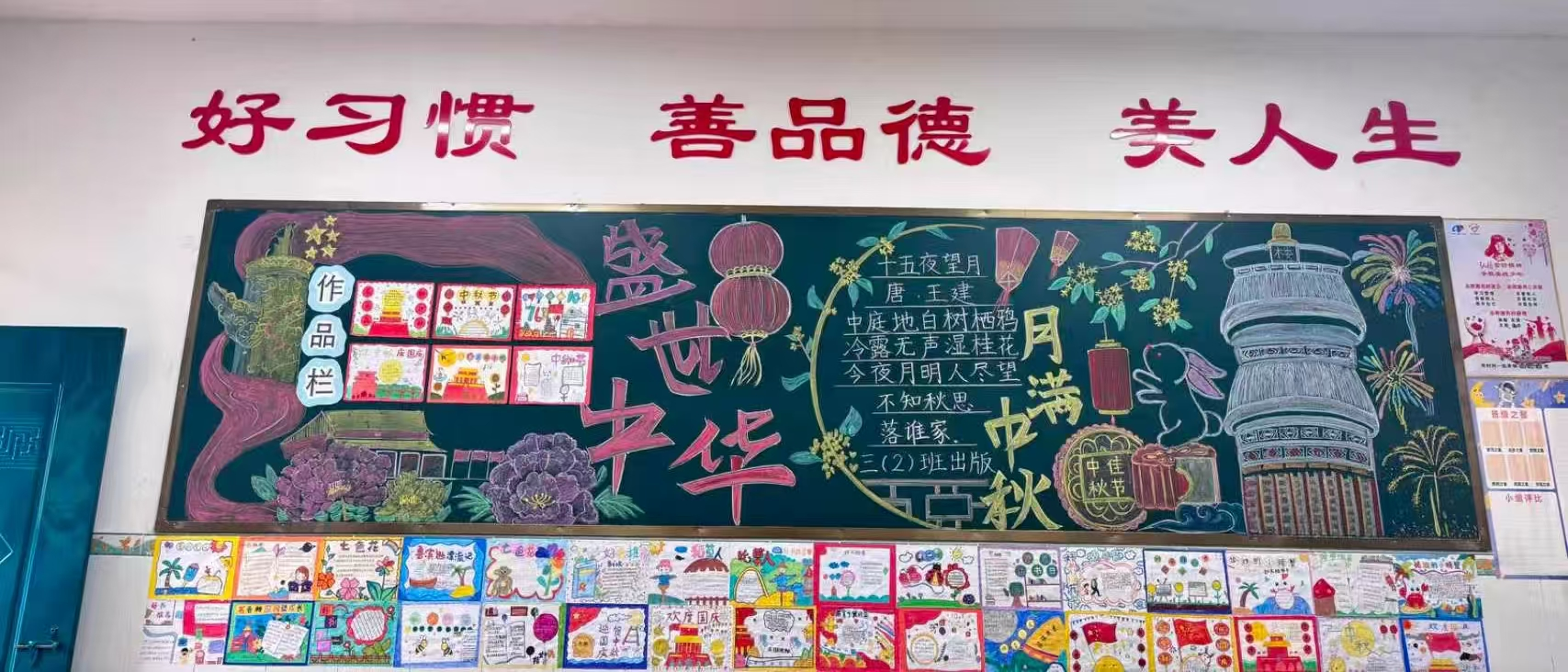 ▲近日,港北区石羊塘小学举办2025年“迎中秋·庆国庆”主题书画展及黑板报活动,以童真的笔墨书写时代颂歌,以缤纷的色彩描绘团圆盛景!