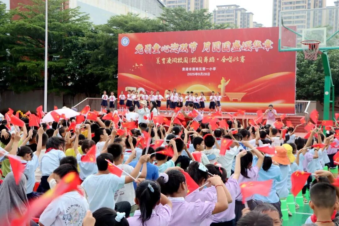 ▲9月28日,港南第一小学以“党引童心迎双节 月圆国盛颂华章”为主题,举办校园舞蹈与合唱比赛活动,1500多名少先队员通过歌声与舞蹈传递对祖国母亲的祝福和热爱。